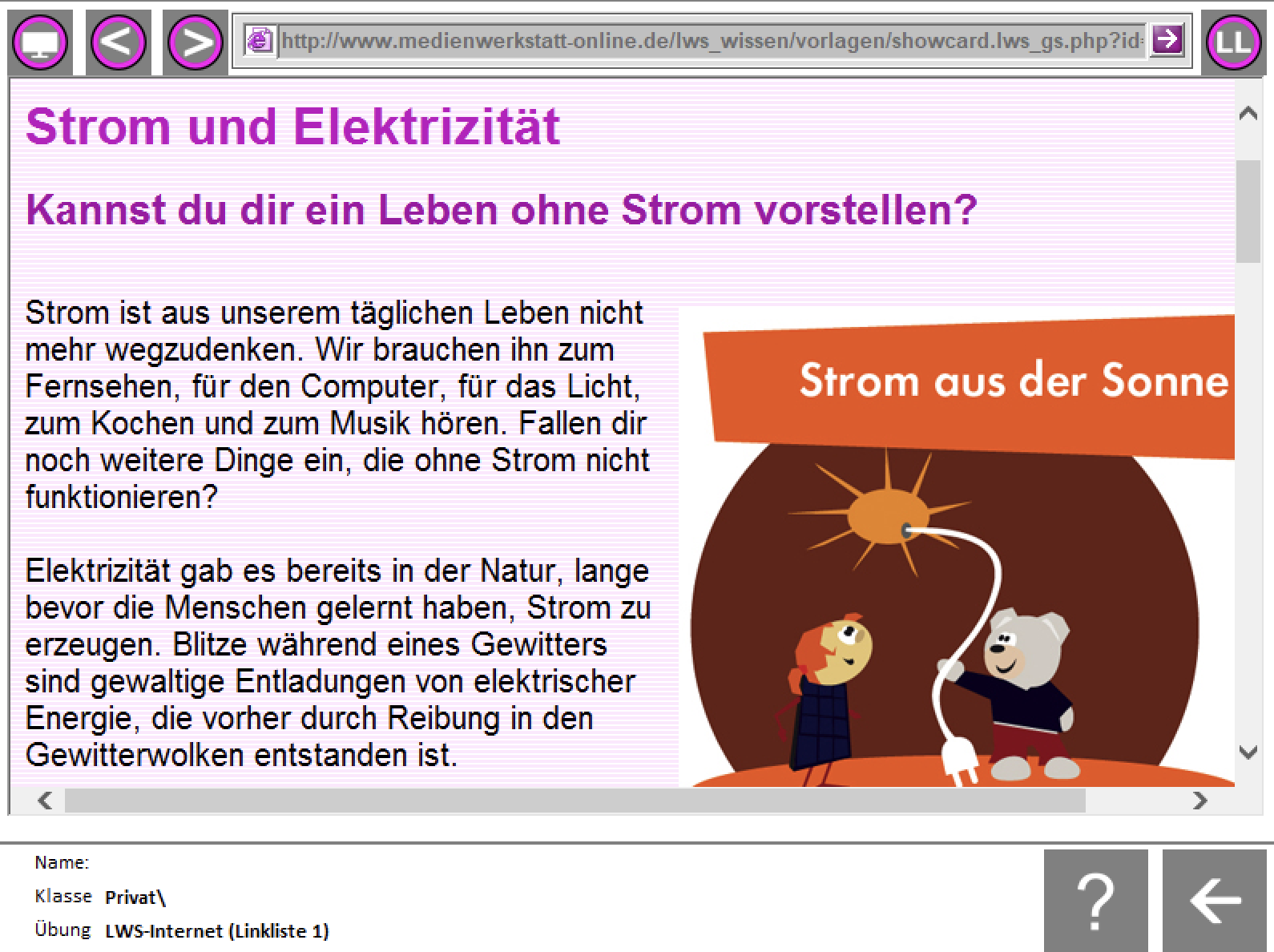Die Wissensseiten der Medienwerkstatt sind kindgerecht und verfügen nur über geprüfte weiterführende Links auf Kinderseiten. Ein kindersicheres Surfen ist auf und über die Wissenskarten gewährleistet. Die Lernwerkstatt 10 und die Lernwerkstatt für das iPad besitzen darüber hinaus zusätzliche Möglichkeiten, wie die Wissensseiten in den Unterricht eingebunden werden können und weisen im Gegensatz zu einem normalen Internet-Browser insbesondere 3 Vorteile auf: |